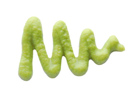 Stroke of delicious spicy wasabi paste isolated on white, top view