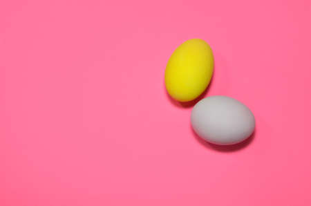 Yellow and gray easter eggs on pink backround