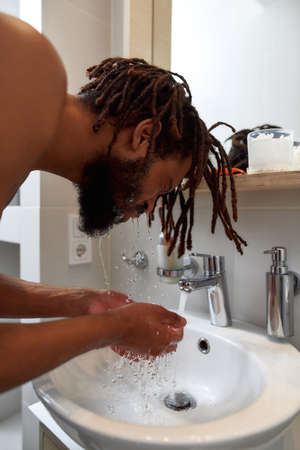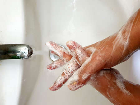 Closeup washing black man hands rubbing with soap and water in sinks to prevent outbreak coronavirus hygiene to stop spreading virus, hygiene for quarantine cleaning COVID-19 concept