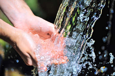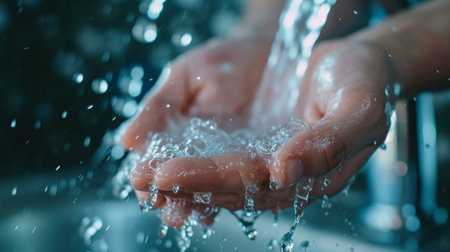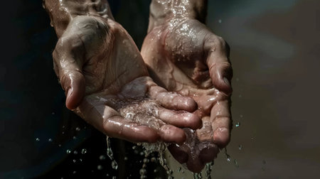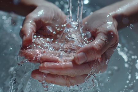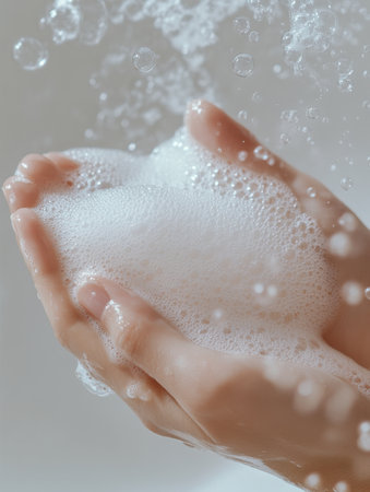 Hands cupping water with bubbles a symbol of cleanliness and refreshment.