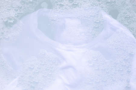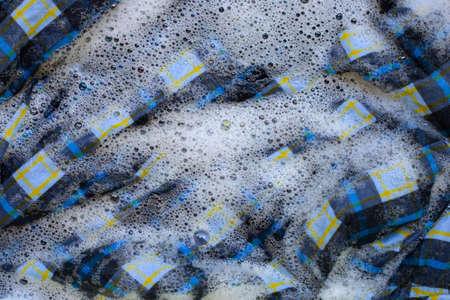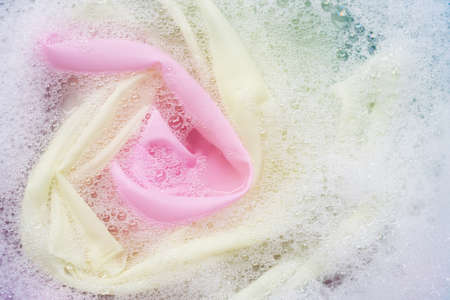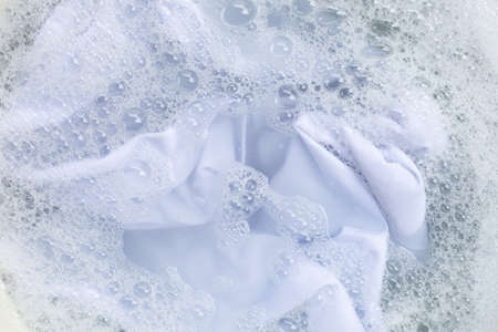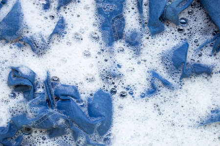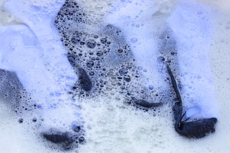 Color clothes soak in powder detergent water dissolution. Laundry concept