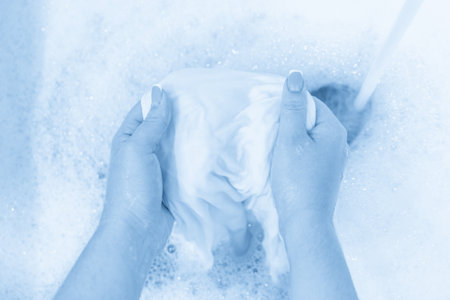 This image captures hands actively washing a shirt in soapy water, illustrating a simple yet essential laundry routine, bringing focus to cleanliness and care.