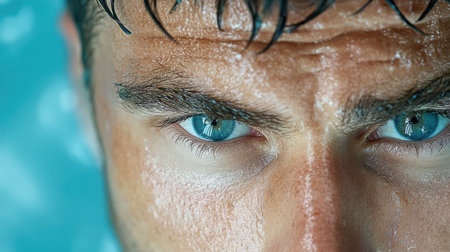 Person with sweat visible on the forehead and dripping down the face generative ai