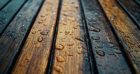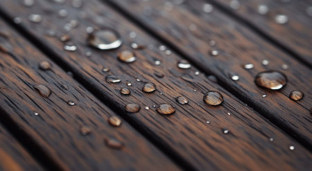 water droplets on a wooden surface