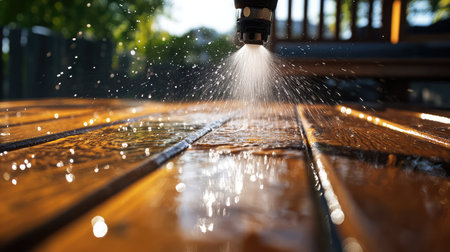 Dancing Rain: Captivating Close Up Photography of Water Droplets on Wooden Surface