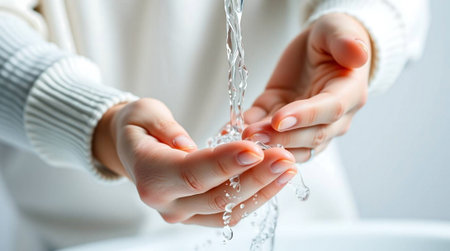 female wash hands in water, beauty care hygiene generative ai.