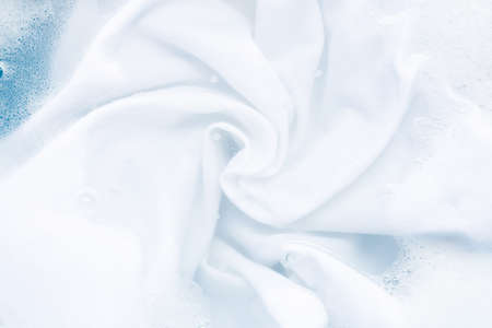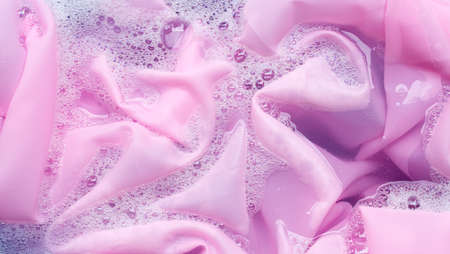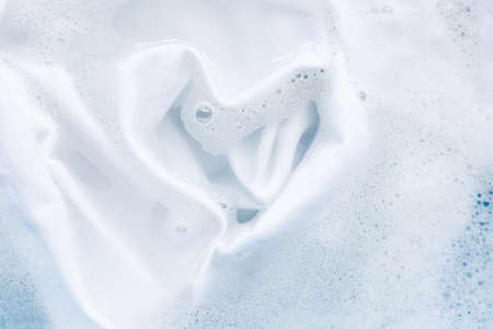 Top view of clothes soak in powder detergent water dissolution. Laundry concept