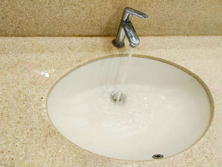 Water wastage from tap in washbasin in bathroom