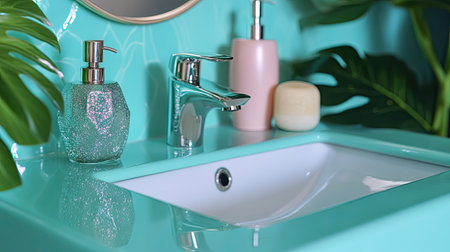 Elegant Bathroom Interior Showcasing a Modern Wash Basin with Stylish Fixtures and Decor Elements
