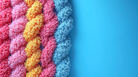 Colorful folded cloths on a light background, showcasing a variety of soft pastel hues The fabric appears cozy and inviting, ideal for home decoration or fashion concepts