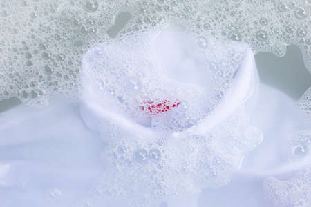 Soak white clothes in powder detergent water dissolution. Laundry concept