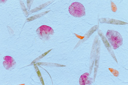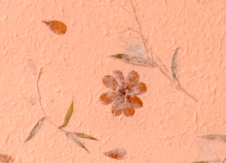 Recycled flower and leaf paper or mulberry paper texture as background.