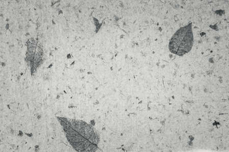 Closeup of handmade paper texture vintage background with leaf. Black and white