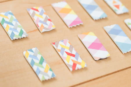 Rolls of colorful adhesive tape for use in scrapbooking.