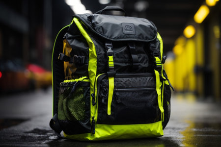 School bag. Backpack with staplers for school on yellow background. generative ai