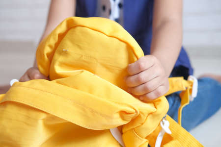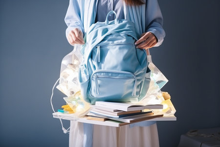 schoolboy packs a backpack to school close-up. Back to school concept. generative ai.