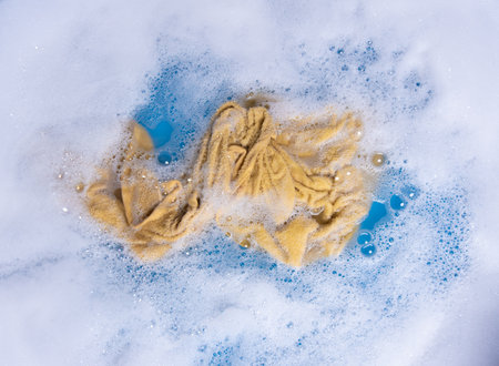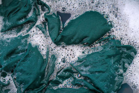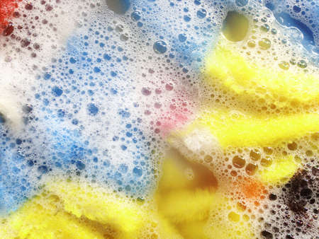 Wet color clothes with white foam Soak before washing,top view