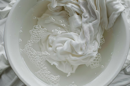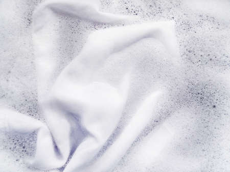 Wet whites clothes with white foam Soak before washing,top view