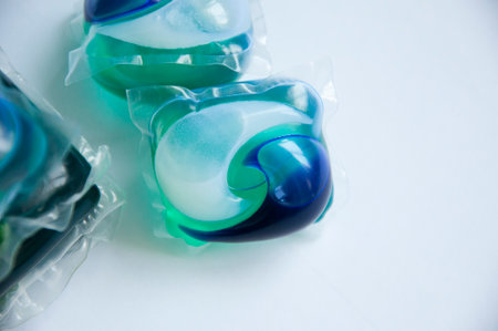 detergent pods closeup. minimalism of detergent. laundry detergent. selective focus and copy space.