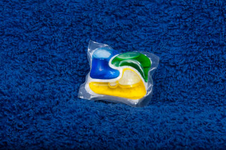 detergent pods closeup and selective focus. minimalism of detergent. laundry detergent.
