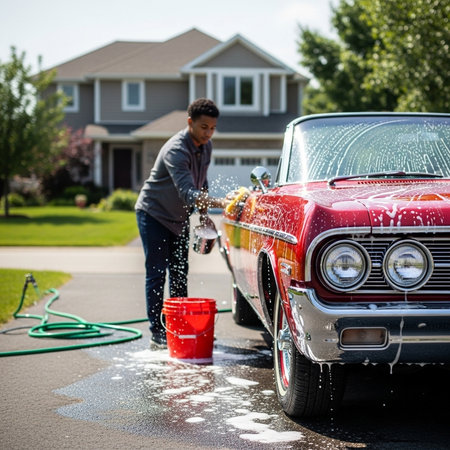 Professional car wash meticulous cleaning of sleek black sports car for ultimate shine