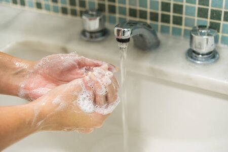 Cleaning Hands, Washing hands with soap for protect coronavirus 2019.