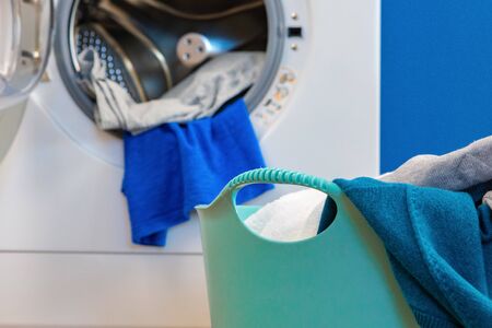 laundry. wash clothes in the washing machine.getting clothes out of the wash.