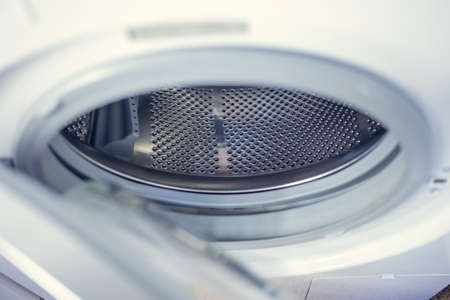 Drum of washing machine dry and clean close-up.Washing Dryer Machine inside view of a drum.