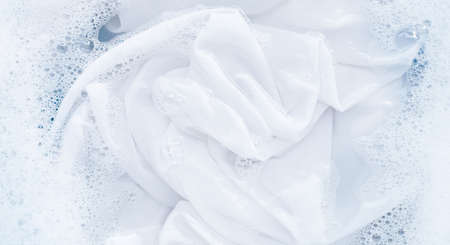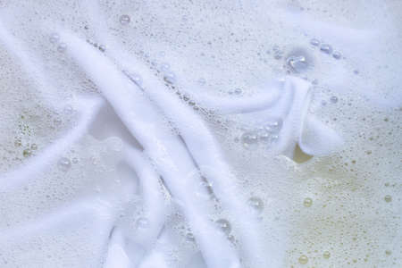 Wet whites clothes with white foam Soak before washing,top view