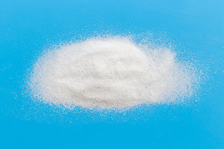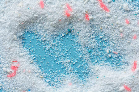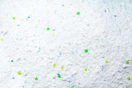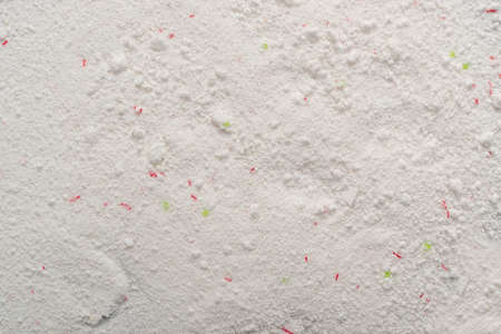 Laundry detergent powder texture pattern top view. Washing soap powder background with copy space