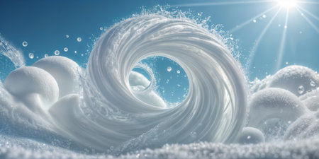 Experience the dynamic visual of a washing machine drum filled with white fabric, generating bubbles and foam during the wash cycle. A representation of domestic cleanliness.