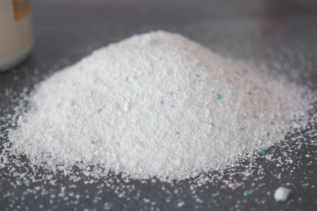Detergent powder - Soap white texture for washing machine. Macro of a granule powder type detergent. Laundry wash clothes background