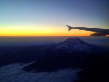Mt. Rainier Above the Clouds at Sunrise From an Airplane