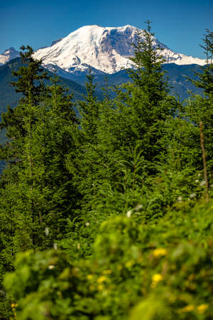 Beautiful wildflowers and Mount Rainier, Washington state in USA