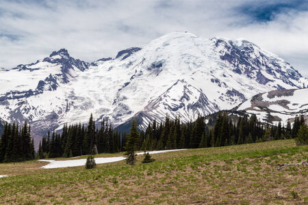 Mt. Rainier Washington State Park views of the peak. Hiking and traveling views near Mount Rainier in Washington over the summer