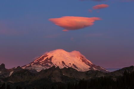 Mount Rainier National Park, Washington, USA. Sunrise over Mount Rainier.