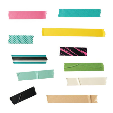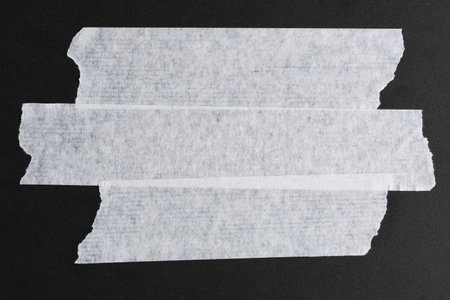 Captivating Collage Canvas: Whimsical Torn Paper with Adhesive Isolated Scotch Sticky Tape Pieces on a Black Background