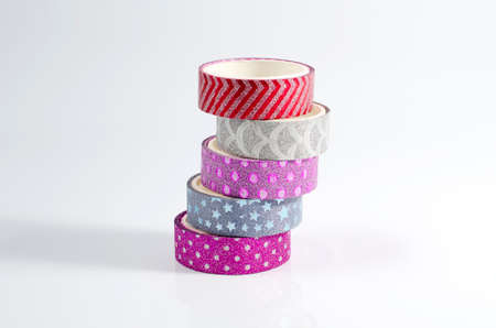 Stack of rolls colorful adhesive tape isolated on white background, Save clipping path.