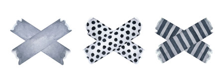 Set of Cross Tape Strips. Isolated on white background. Torn Stickers tape paper pastel colors, blank banners tags labels template design. Watercolor illustration of a decorative tape.