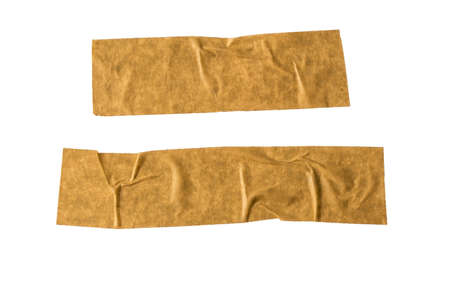 Two pieces of crumpled adhesive tape isolated on a white background. Universal packaging tape.