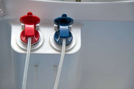 Control Panel of the toilet bowl. Hygienic and high technology of the toilet bowl, automatic modern flush toilet.