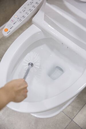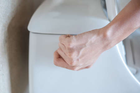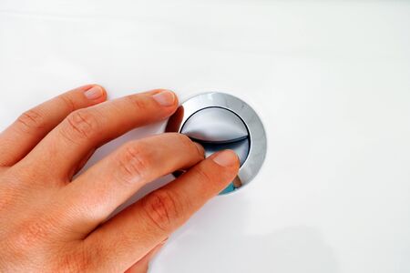 hand press and flush toilet. Cleaning, Lifestyle and personal hygiene concept