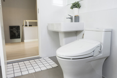 Modern Toilet bowl in a men bathroom,white ceramic flush toilet for men in toilet room