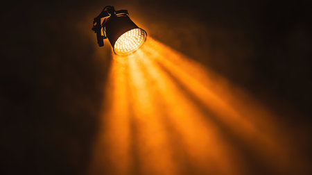 Spotlight in warm orange hues, casting its glow in the center of a dark space with faint shadows forming at the edges. No text, no people.