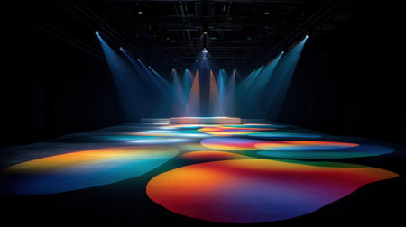 Dynamic light show event in modern venue colorful illumination indoor space artistic perspective