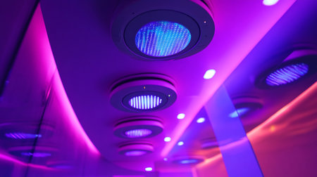 This image captures the essence of modern industrial design with bright neon lighting creating a captivating atmosphere in a contemporary space.