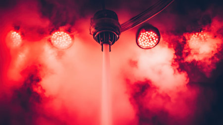 Captivating stage lighting illuminates a red haze, evoking a mysterious atmosphere well-suited for theatrical performances and dynamic events filled with drama.