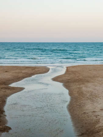 Mouth of a creek crossing a beach until it reaches the sea