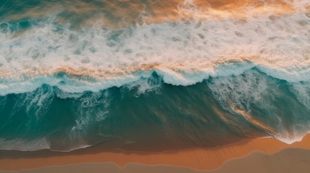 Aerial view of ocean waves breaking on the sandy beach. Top view generative AI