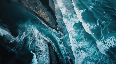 aerial abstraction of a rumbling brown shoreline in iceland, captured with photorealistic detail. this uhd image, taken with a nikon f2, showcases the dark and gritty subject matter of northern china's terrain. an associated press photo that beautifully captures the rugged beauty of the icelandic coastline. ai generated